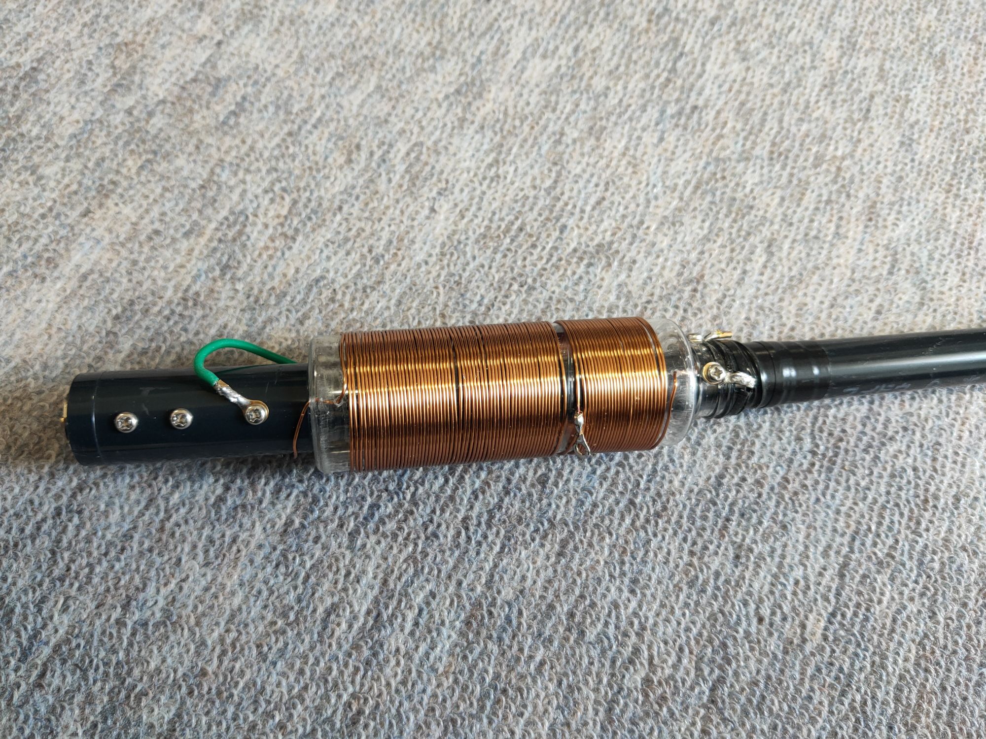 リグに繋いで動作確認、10W機でも問題なく利用できます。 スマホ充電もOKです。