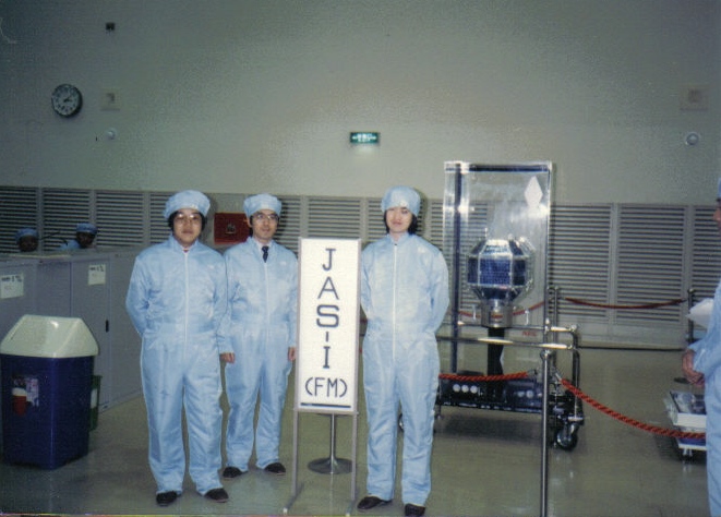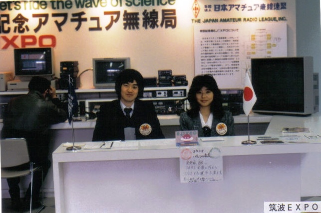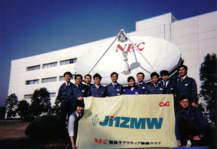 JI1ZMW時代 昔はこのクラブの設立のために幹事をしていました(私は何処でしょう、白い腕がヒント) 会社に部室を作りアンテナを立てる交渉なども行いました このクラブ創設に頑張っていました まだ同好会の頃は仮設アンテナで対応してました 日本最初のアマチュア無線の衛星を見る機会がありました JAS-1 日本最初のアマチュア無線の衛星を見る機会がありました つくば万博の記念局のお手伝いをした事がありました